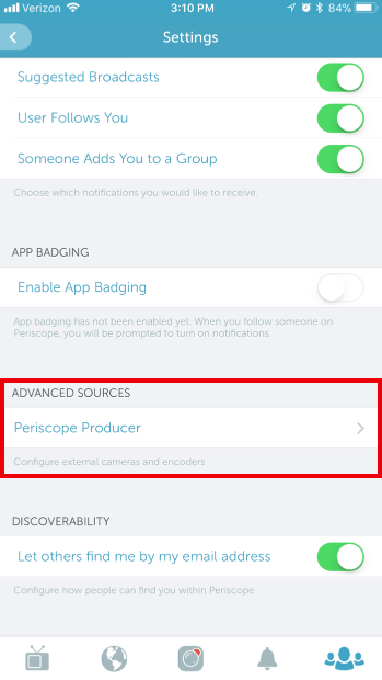 NOTE: You can also get the stream key by logging into periscope from a web browser and going to this link: https://www.pscp.tv/account/producer |